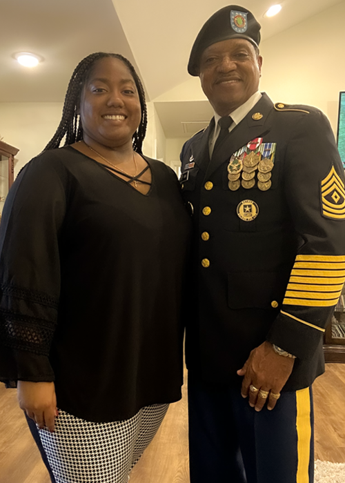 FSU PC Alumni ('23) Zenovia Goss is a proud daughter of her veteran father